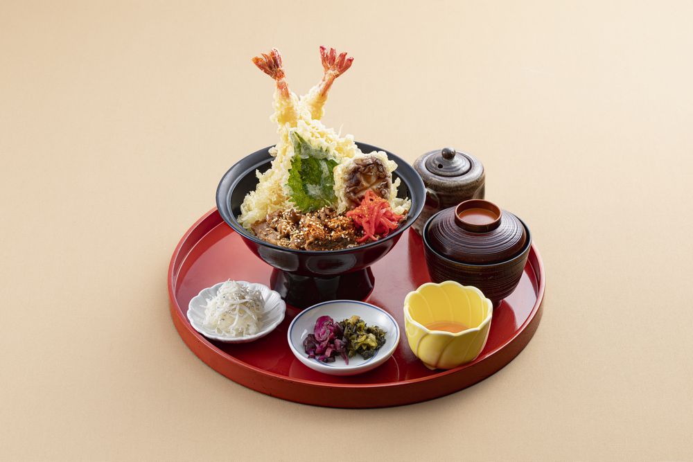 牛焼肉と海老・椎茸・舞茸・さつま芋・大葉の天ぷらを合わせて仕上げた牛焼肉・天丼をお愉しみください。